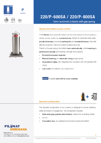 The semi-automatic bollard 220/P 600 SA stands out for its superior robustness and is designed to balance security and functionality. Featuring a stronger structure suitable even for urban environments, it offers good impact resistance, is easy to operate, and is available with 8-point LEDs for improved visibility.