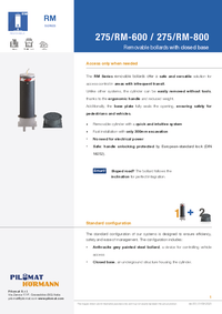 The removable bollard 275/RM 600 A offers the most solid barrier in the RM line. Its increased height and diameter provide maximum protection, strong visual impact, and superior stability, with the added benefit of the reduced 300 mm excavation depth, making it suitable for installations where limited ground depth is available.