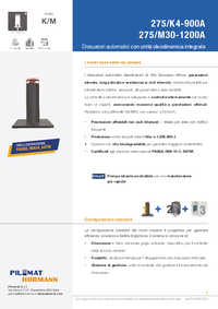 Il dissuasore automatico ad alta sicurezza 275/M30 1200 A è pensato per massimizzare la visibilità grazie all’altezza imponente. Il modello è dotato di tripla certificazione (PAS68, IWA 13 e ASTM M30 a 50 Km/h) e offre una resistenza allo sfondamento superiore, fino a 1.200.000 J pari a un livello M40. Anche questo modello è disponibile con pompa estraibile per semplificare la manutenzione.
